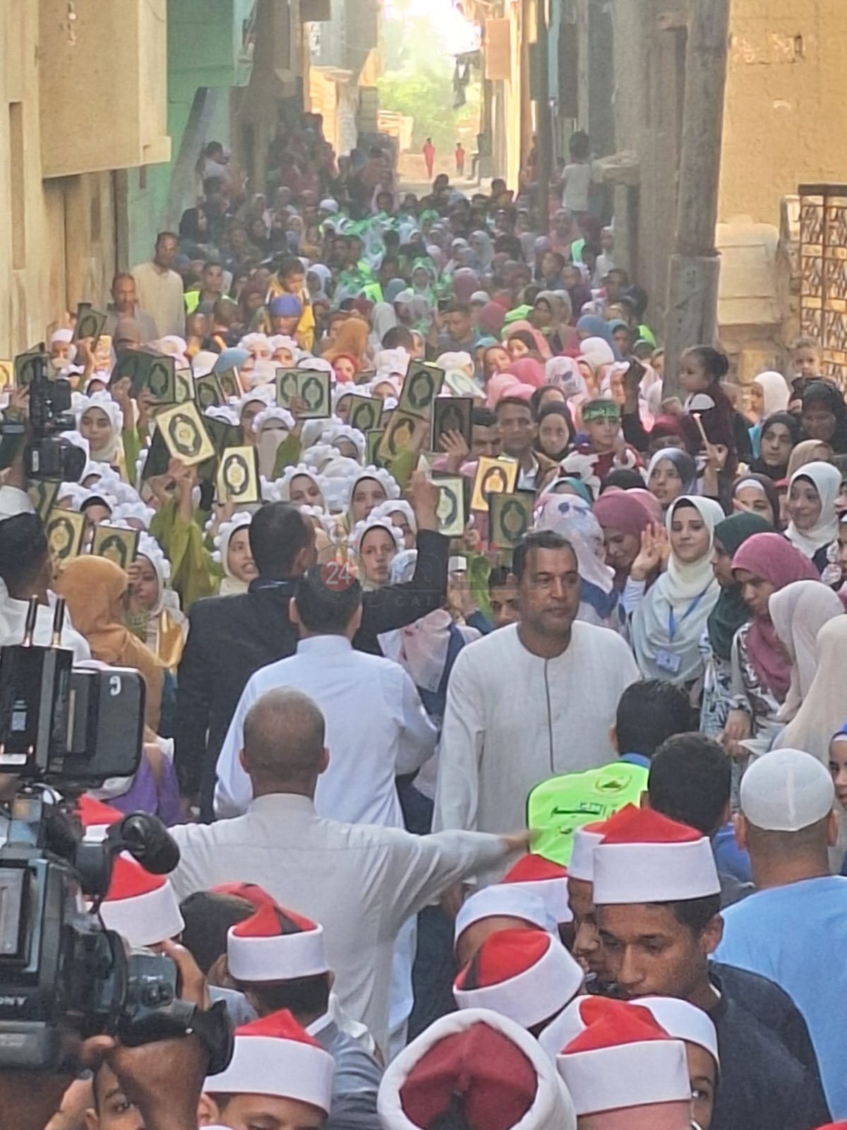 بدأت الاحتفالية بمسيرة مهيبة جابت شوارع القرية، حيث ارتدى المكرمون الملابس الأزهرية والتيجان للفتيات ورفعوا المصاحف الشريفة تعبيرًا عن فخرهم بتحقيق هذا الإنجاز العظيم لحفظ كتاب الله.
