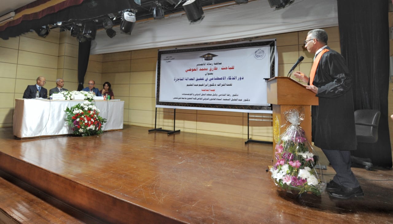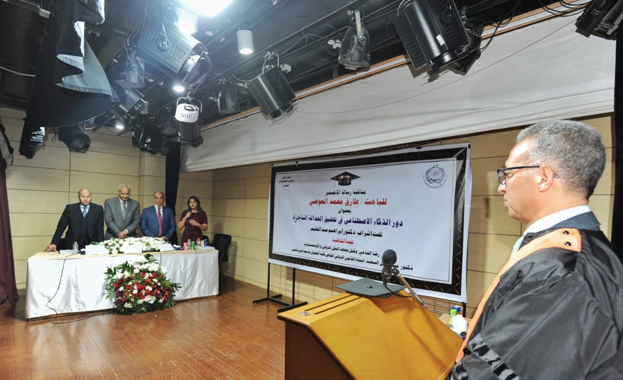طارق العوضي يحصل على الماجستير حول دور الذكاء الاصطناعي في تحقيق العدالة الناجزة وسط حضور قانوني بارز