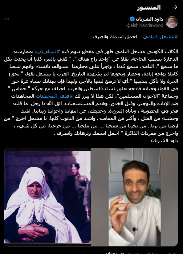 مشعل النامي إعلامي كويتي يسب نساء غزة