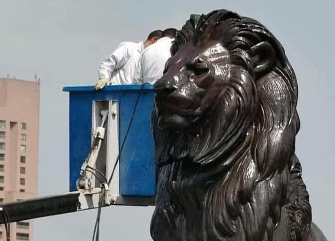 وبالنسبة لمسألة دهن كوبري قصر النيل فقال، أنا مقدرش أصدق، أن تماثيل أسود قصر النيل، دهنت باللون الأسود، إلا في حالة طلب مني أني أطلع معاينة، لأن أي مادة تتحول للون غير لونها الأصلى متأثره بالغسيل، وعند جفافها ترجع للونها ، محتفظه بلون البتينه الأصلي، وهذا السبب وراء ظهور أسود قصر النيل باللون الأسود في الصور، وعند جفاف التماثيل، ستعود للونها الطبيعي، ومقدرش أحكم من خلال الصورة، وللحكم على أعمال الصيانة بالتمثال، لا بد أن تكون من خلال لجنة مخصصة، وفي وقت معين خلال النهار، ولا بد من تصديق بيان الوزارة.