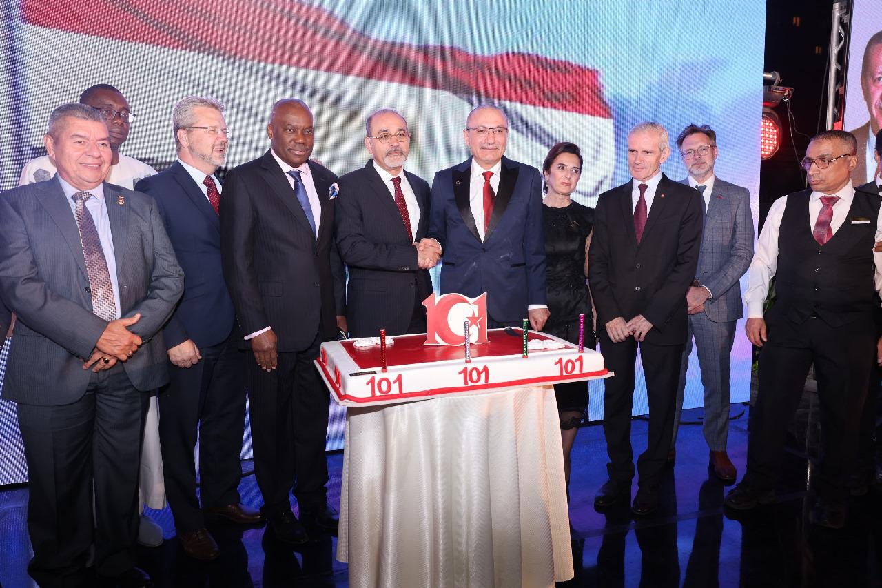 وذكر السفير التركي، في كلمته بمناسبة الذكرى 101 لتأسيس الجمهورية التركية، إنه في ظل الإرادة الحازمة والصلبة للرئيس أردوغان، أصبحت تركيا، الان من بين الدول العشر الرائدة في العالم في الصناعة والتكنولوجيا والثقافة والصحة والرياضة والدفاع.