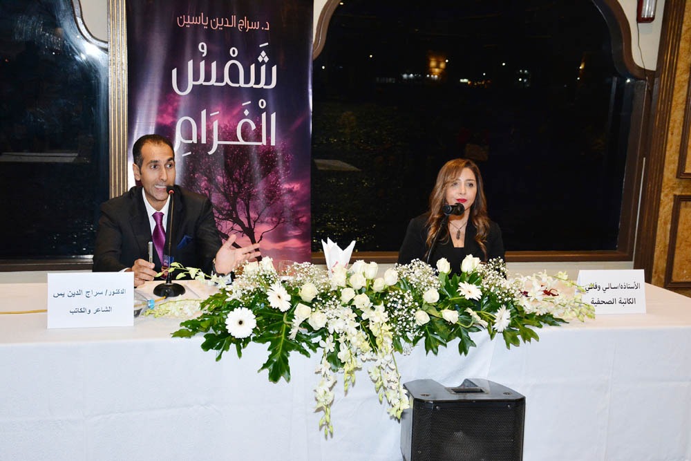 شارك عدد من الإعلاميين وزوجات السفراء والمشاهير، في الاحتفال بتوقيع أحدث ديوان للدكتور سراج الدين ياسين، وذلك بأحد المراكب النيلية بالزمالك.