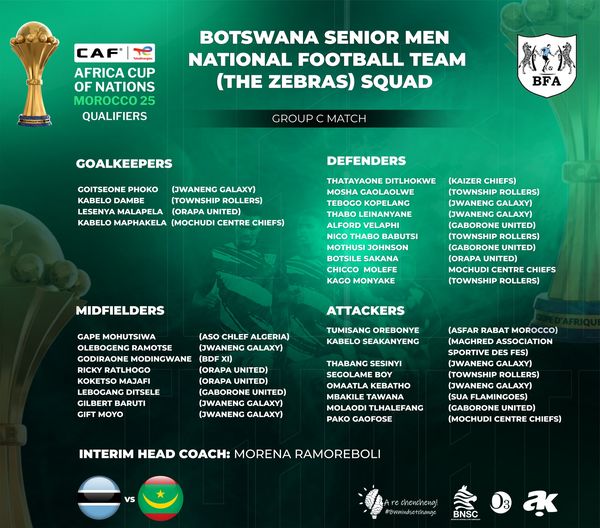 قائمة بوتسوانا لمواجهتي مصر وموريتانيا في تصفيات أمم إفريقيا
