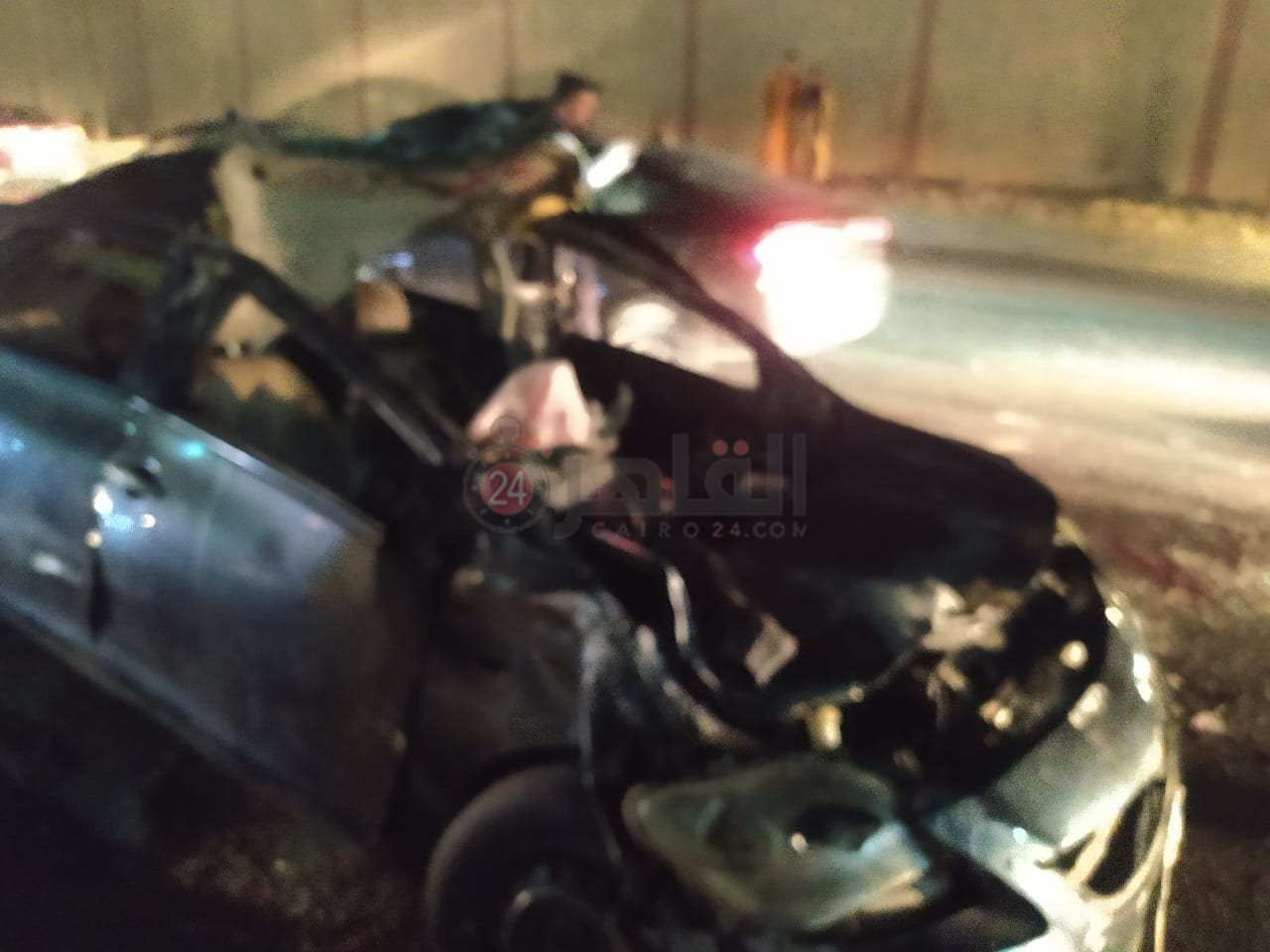مصرع شخص وإصابة 4 آخرين في حادث تصادم سيارتين على طريق الأوتوستراد | صور