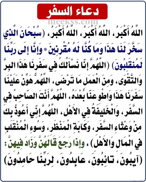 - يا رب احفظني من كل ما يضر بي في هذا السفر واكتب لي نجاحا مبهرا يا عزيز يا ناصر الضعفاء.