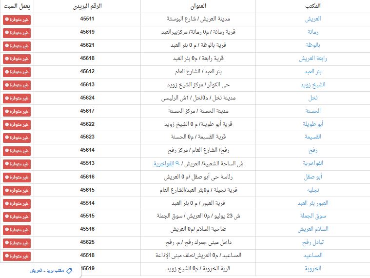 - مكتب بريد بئر العبد - بئر العبد، شمال سيناء.