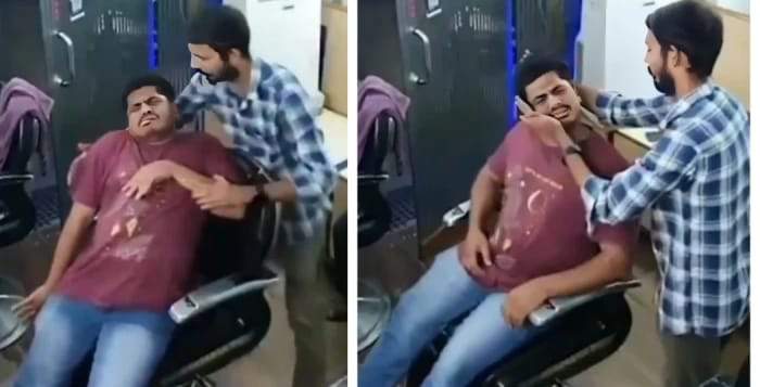 تصدر فيديو حلاق هندي خلال إجرائه مساجًا للرقبة لأحد الزبائن، مواقع التواصل الاجتماعي خلال الساعات الماضية، حيث تعرض الأخير للإصابة بتشنجات وشلل مؤقت، ما أثار حالة من الغضب عبر منصات التواصل الاجتماعي.