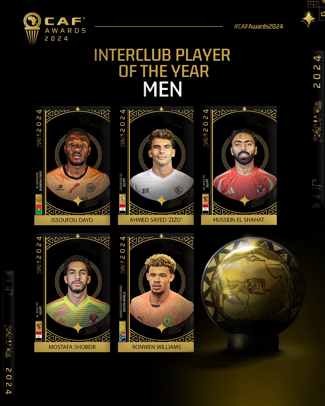 قائمة اللاعبين المرشحين للفوز بجائزة الأفضل داخل إفريقيا 2024
