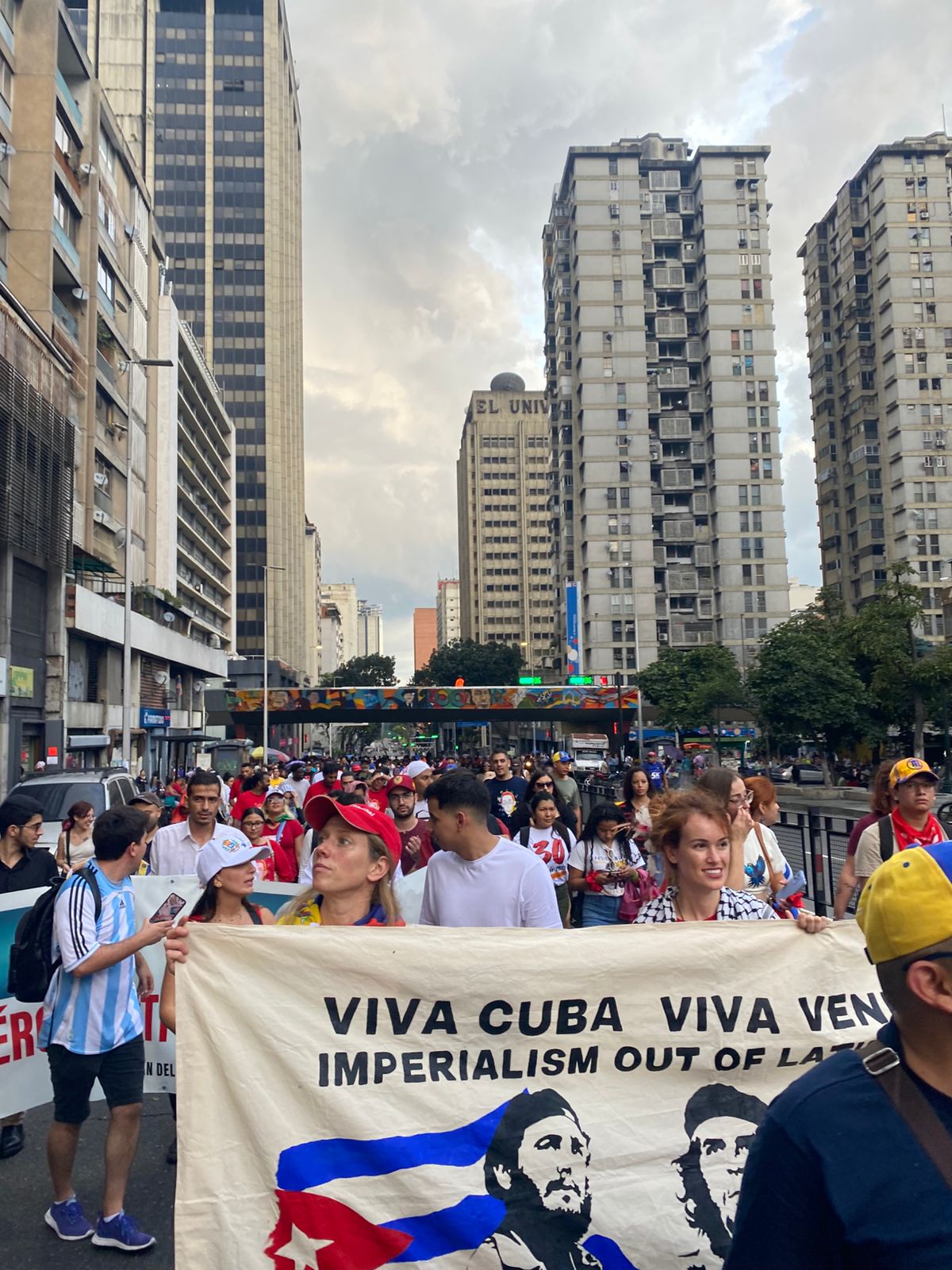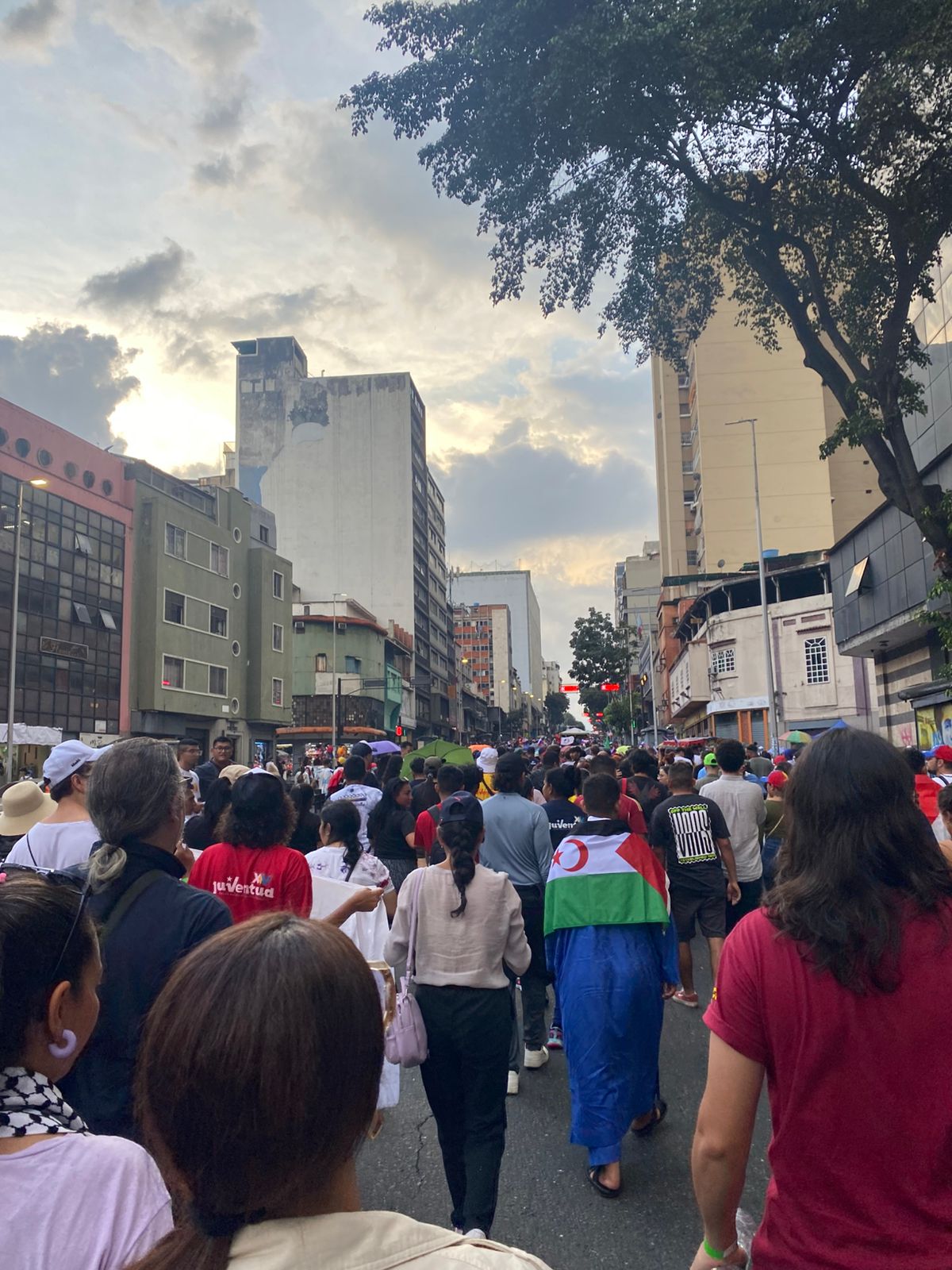 نظم آلاف الطلاب الفنزويليين مسيرة طلابية دعمًا لفلسطين جابت شوارع العاصمة كاراكاس، وصولًا إلى القصر الرئاسي للرئيس الفنزويلي نيكولاس مادورو.