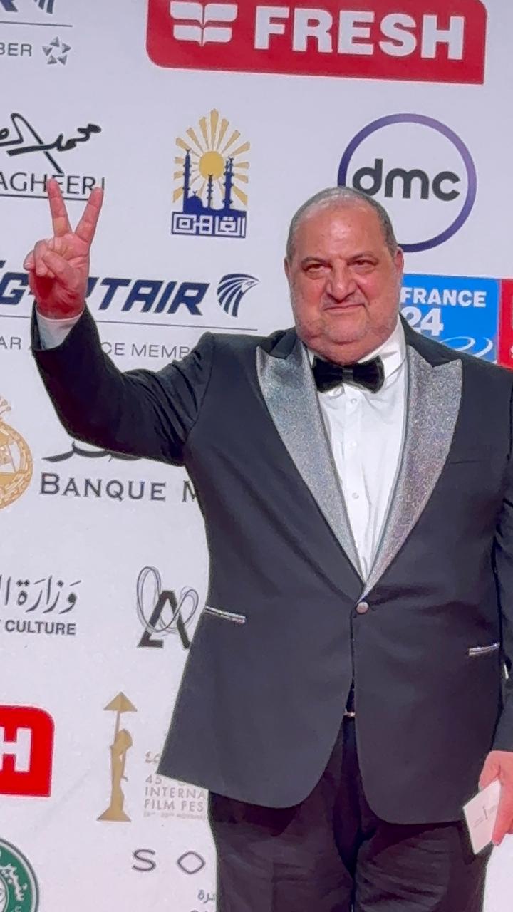 ختام مهرجان القاهرة السينمائي.. خالد الصاوي يرفع علامة النصر ونبيلة عبيد تداعب المصورين