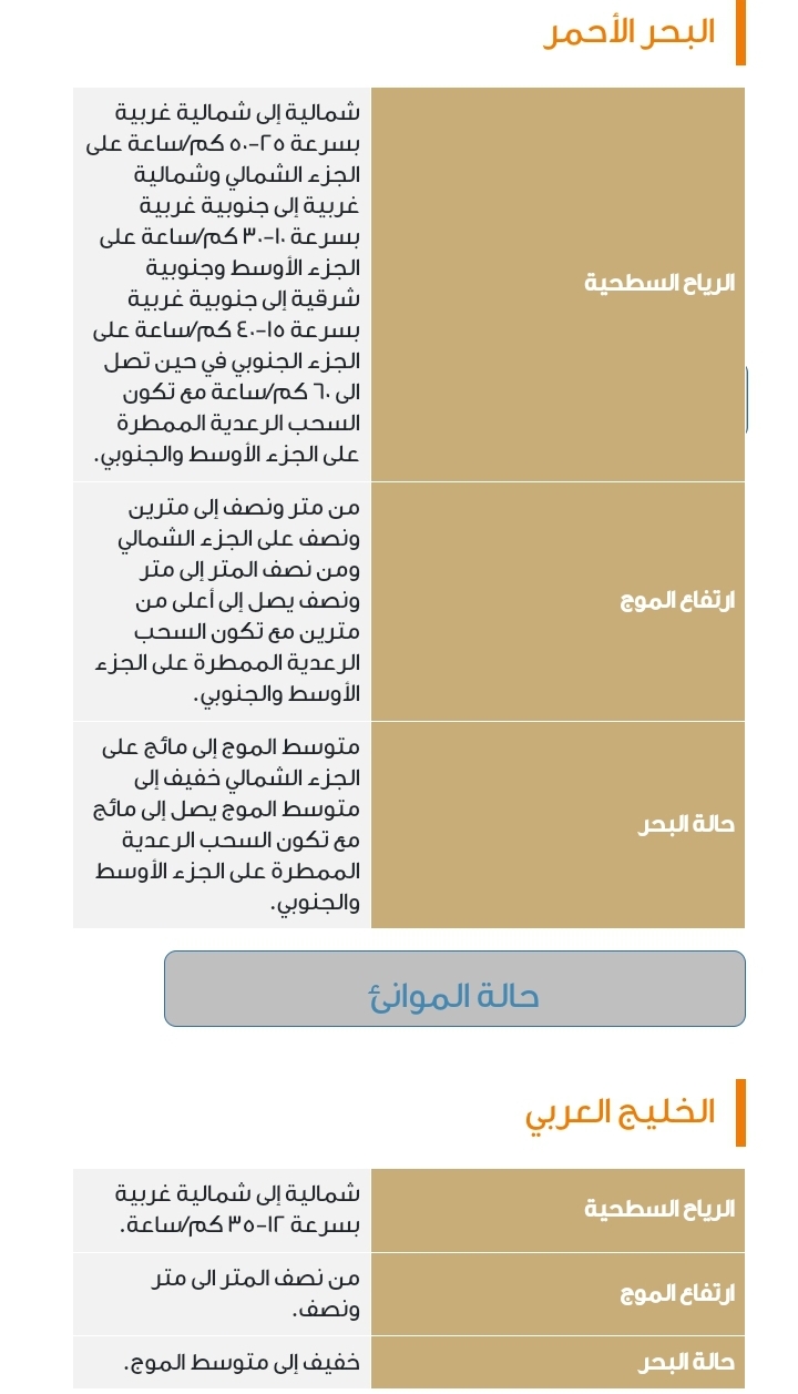 وحول بيانات طقس السعودية اليوم بحريًا، أوضح المركز أن البحر الأحمر والخليج العربي، يشهدان ارتفاعًا في الأمواج وتكون السحب الرعدية، مما يستدعي الحذر من قبل مرتادي البحر.