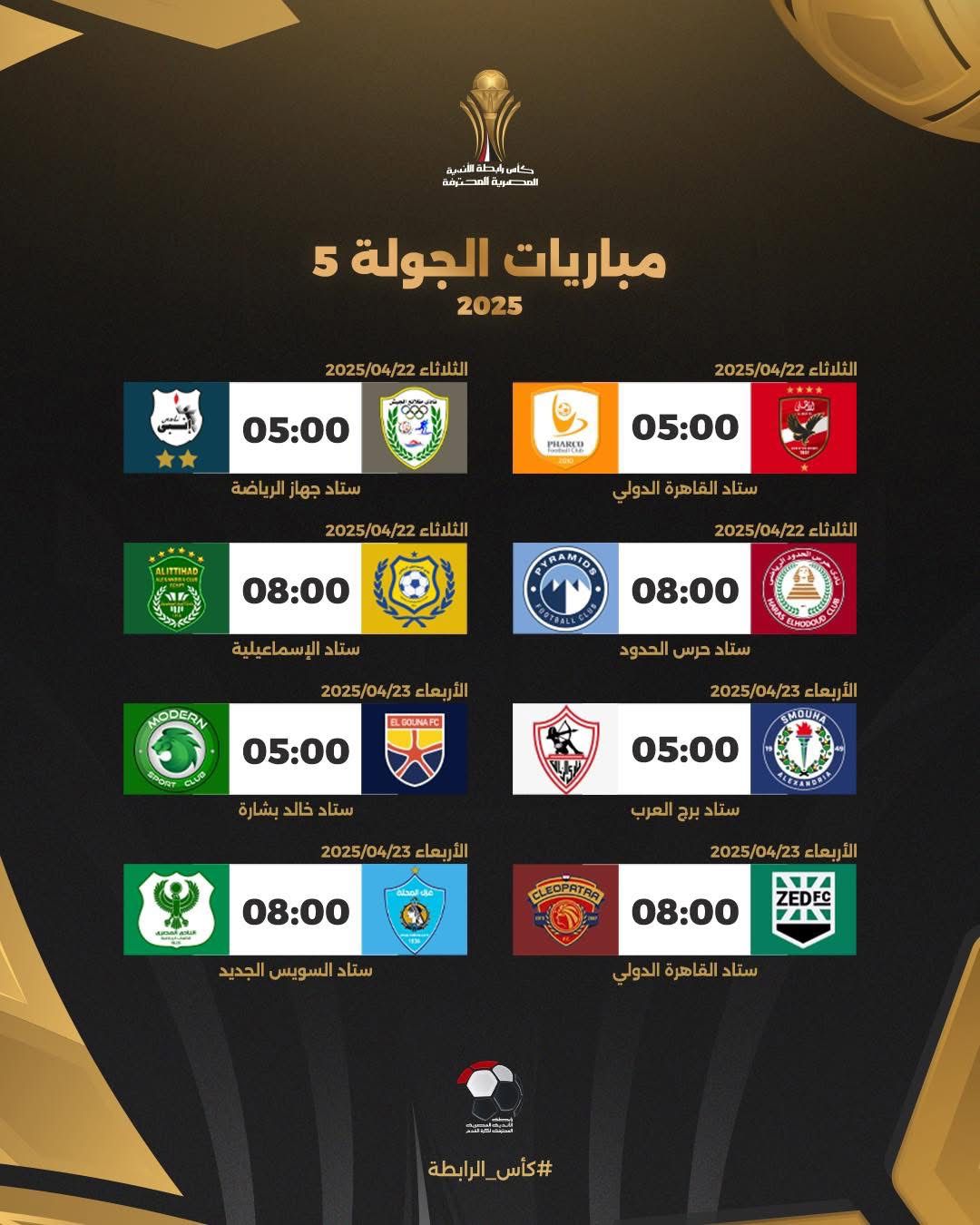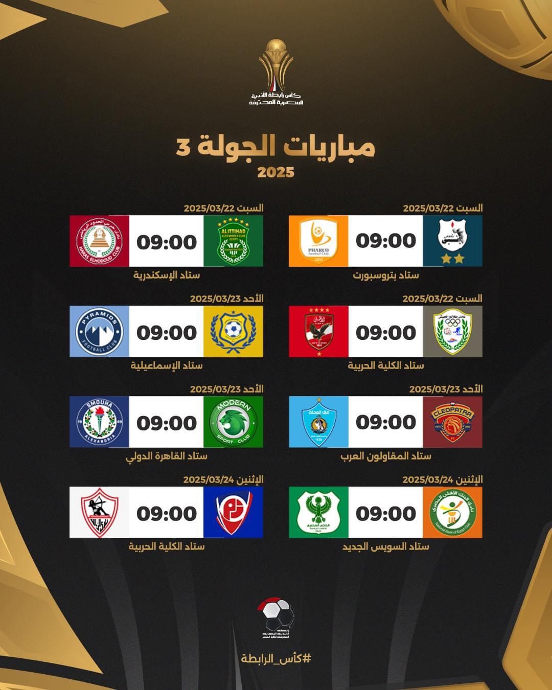 وجاءت قرعة كأس الرابطة المصرية على النحو التالي: