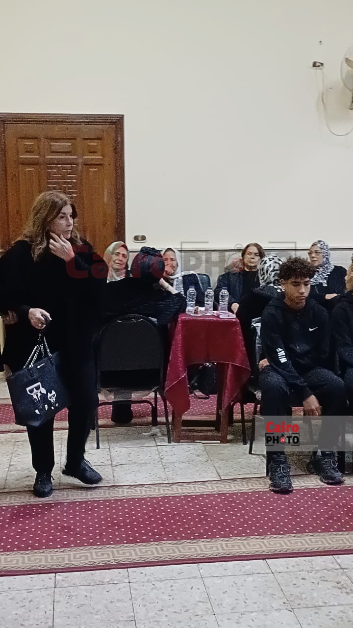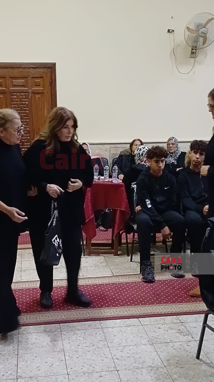 ميرفت أمين أول الحضور في عزاء شقيق الفنانة حنان سليمان بمسجد الكويتي بزهراء المعادي