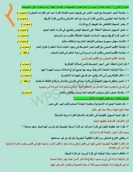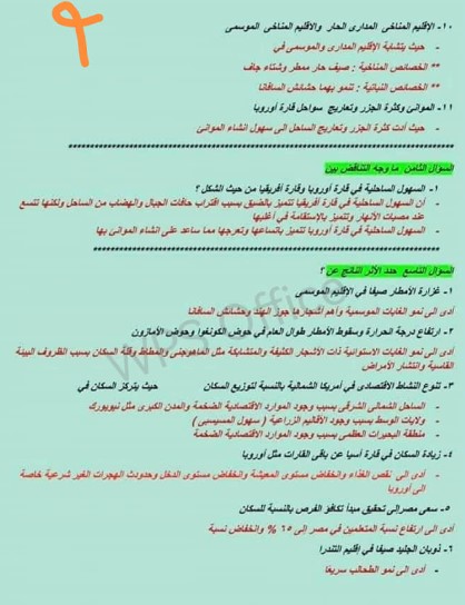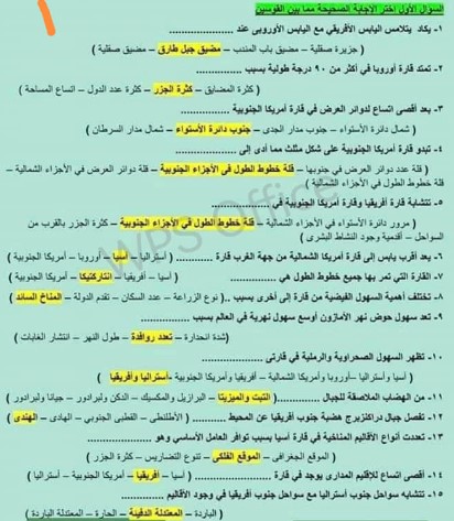 مراجعة مادة الدراسات للصف الثاني الإعدادي