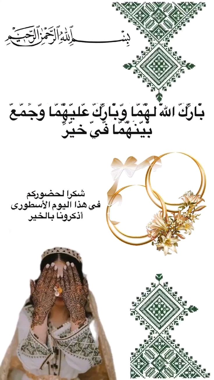 - بارك الله لكما في هذا الزواج وأدخل الفرح دائمًا إلى دياركم، وجمع بينكم في خير وسلام.
