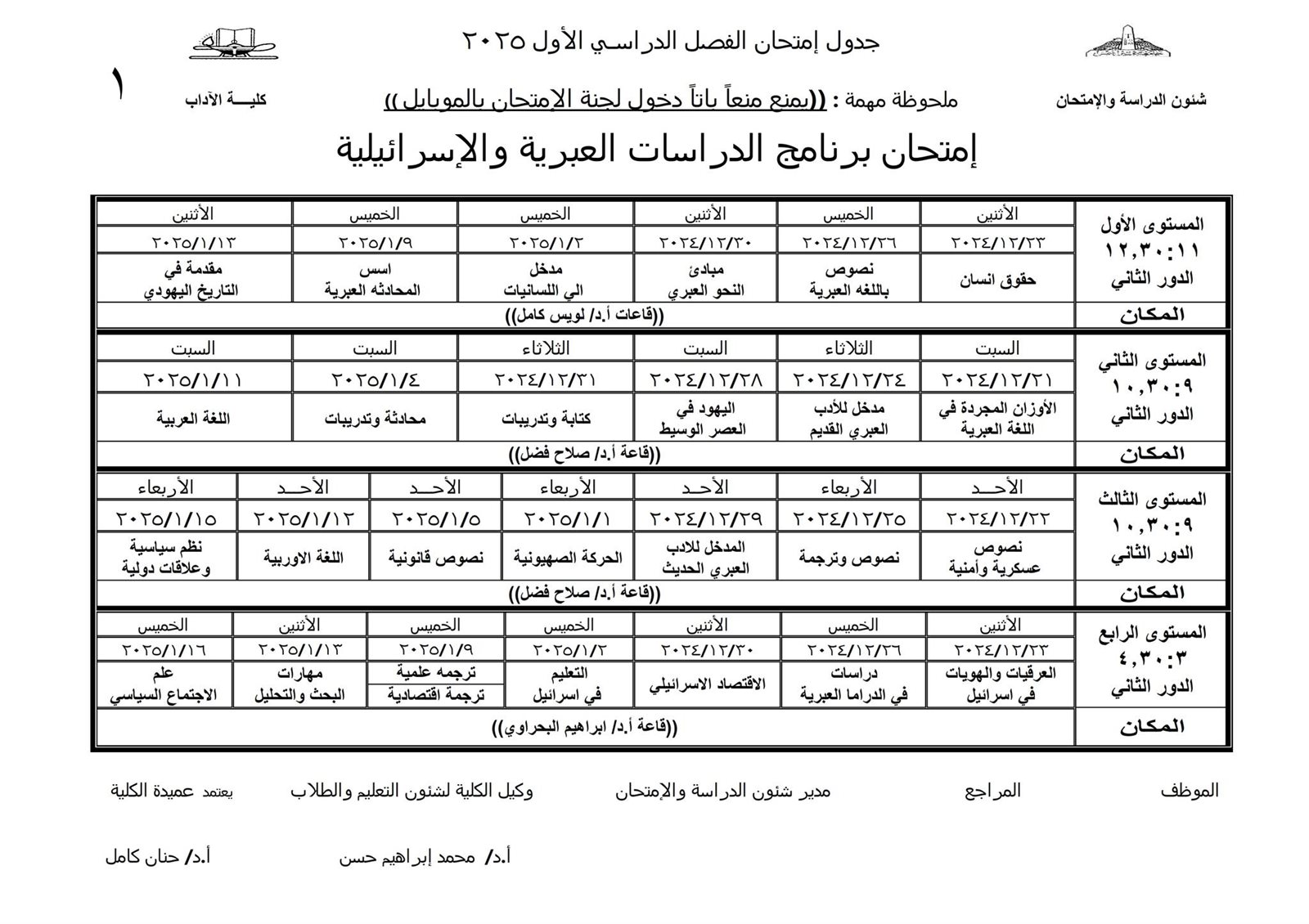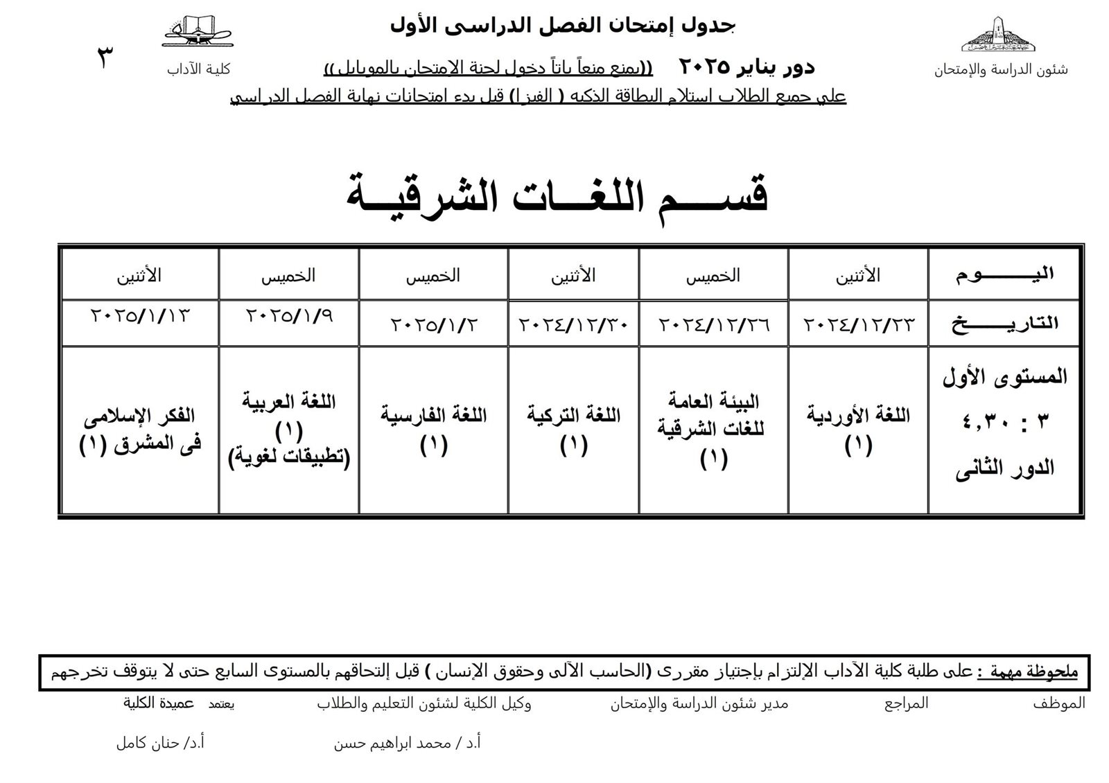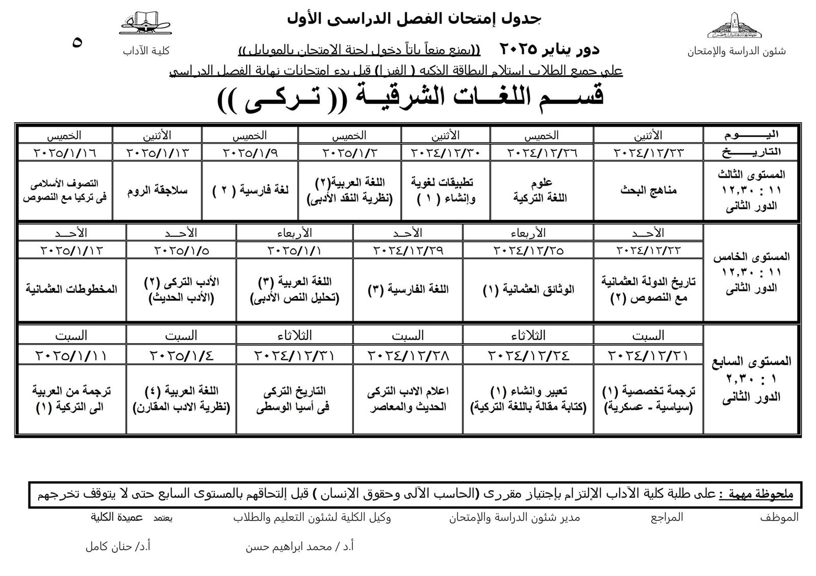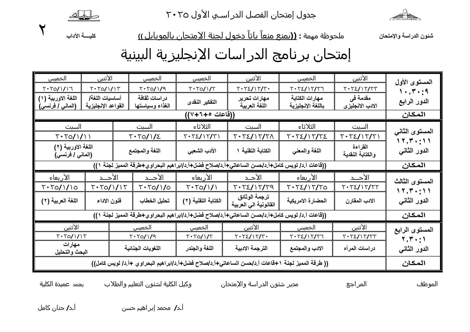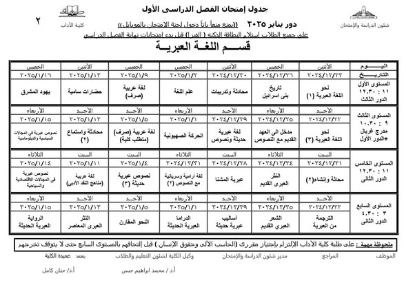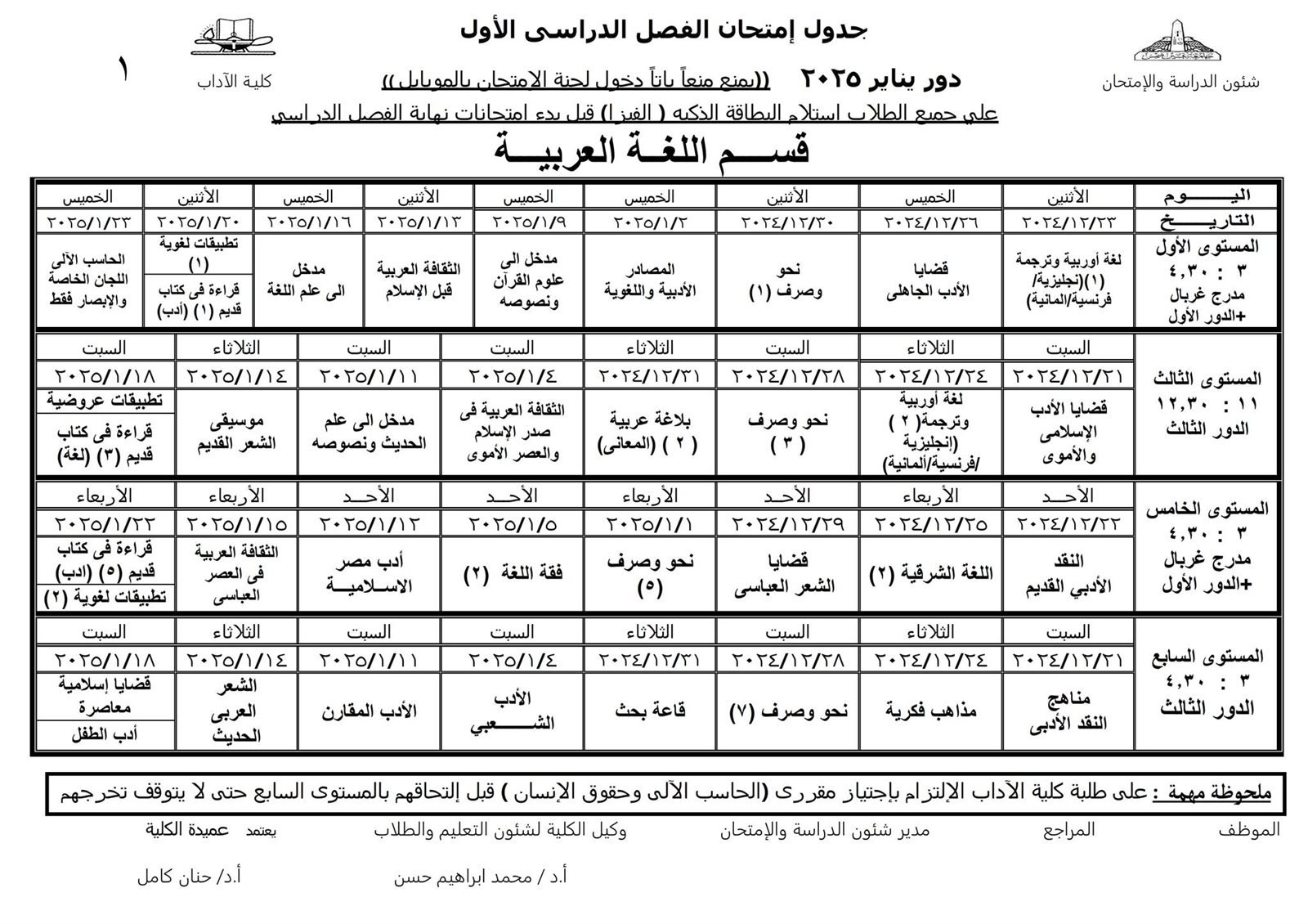 ننشر جداول امتحانات منتصف العام 2025 بكلية آداب عين شمس| صور