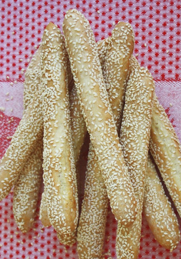 - خذي كل قطع من العجينة وافرديها رول ببطن يديكِ على سطح مستو ثم غلفيها بالسمسم وضعيها على صاج.