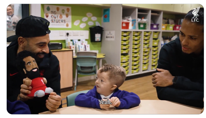 ونشر الحساب الرسمي لنادي ليفربول، عبر إكس، فيديو لملخص زيارة الثنائي إلى الطفل إسحاق، والمصاب بمتلازمة وولف- هيرشهورن، وهو اضطراب وراثي نادر يؤثر على النمو والتطور.