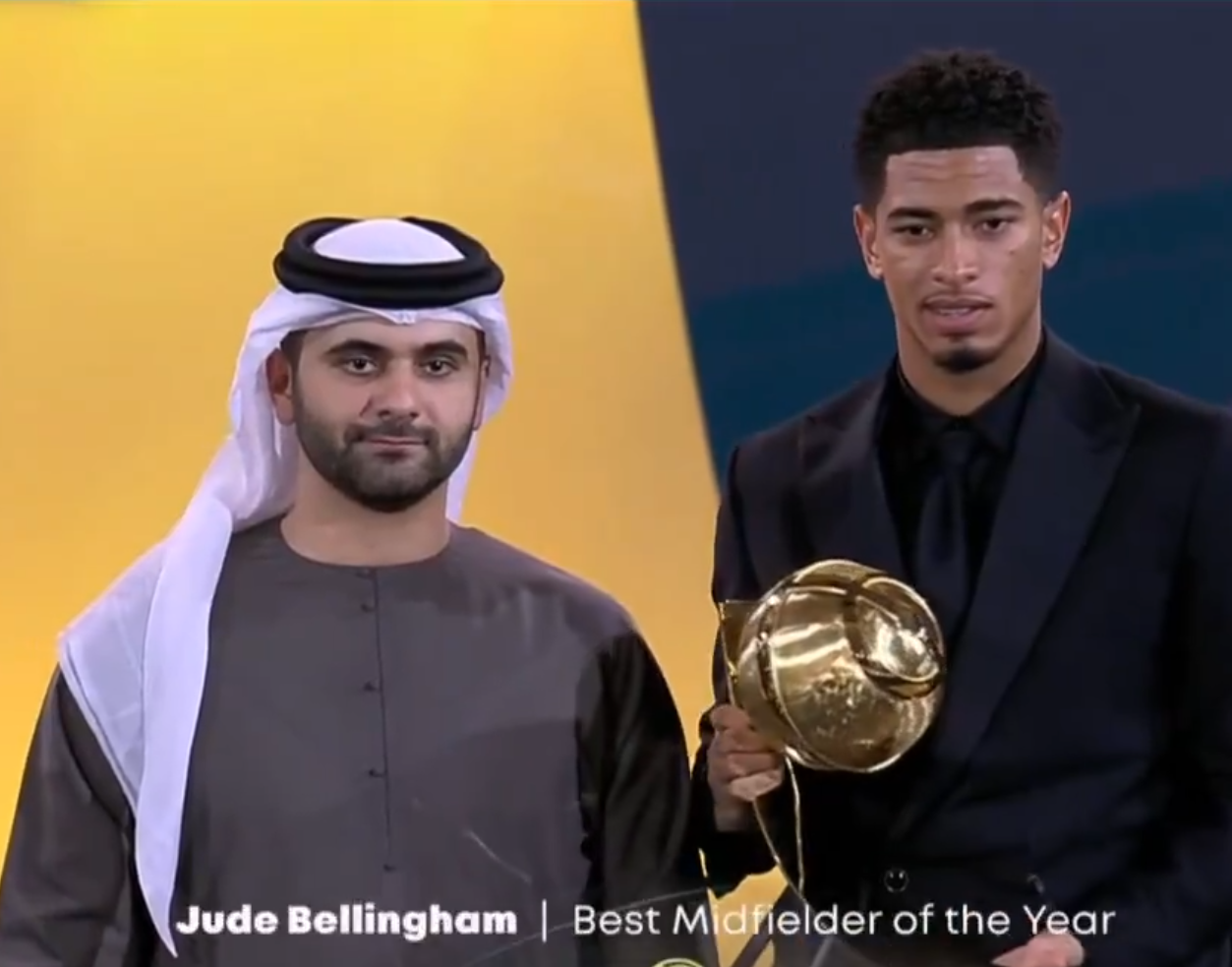 تصريحات جود بيلينجهام عقب تتويجه بجائزة أفضل لاعب وسط في العالم ومارادونا من جلوب سوكر