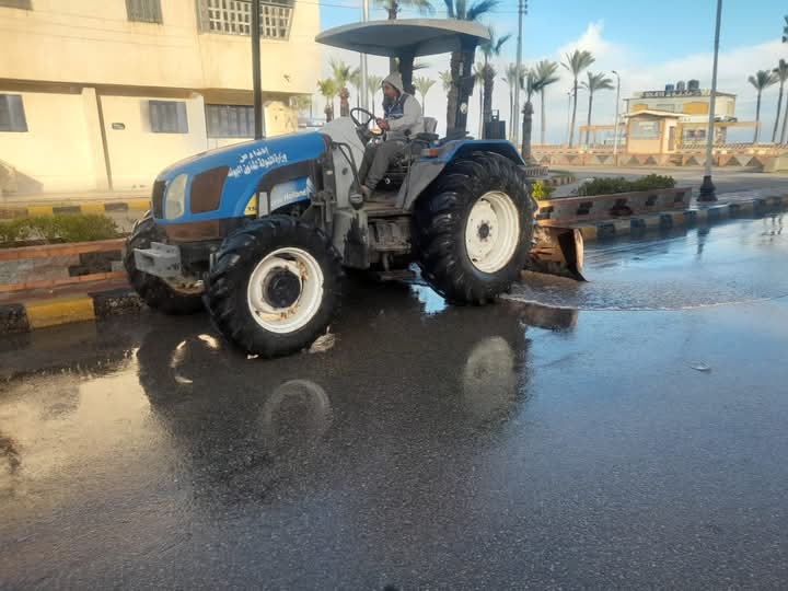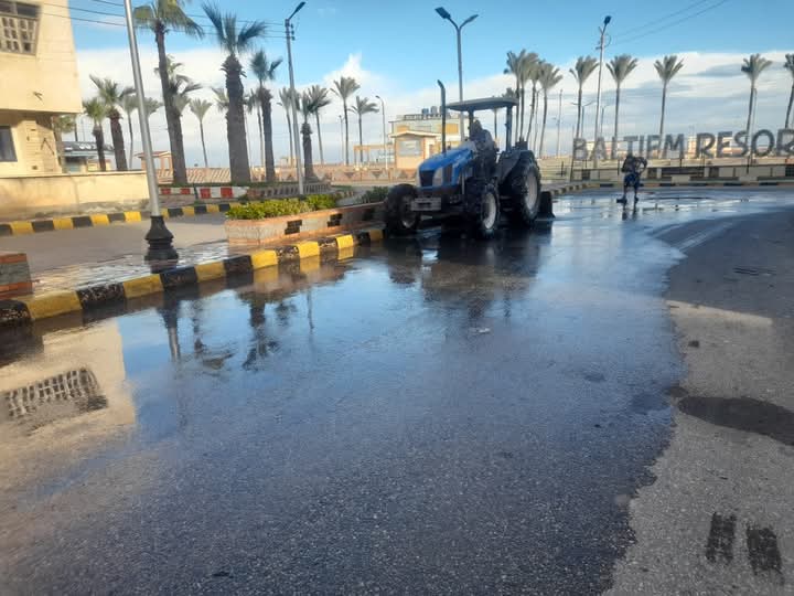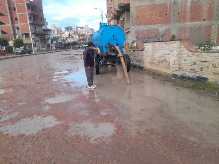 كسح مياه الأمطار بشوارع مدينة بلطيم