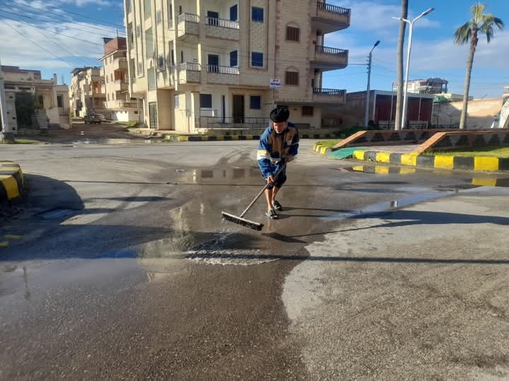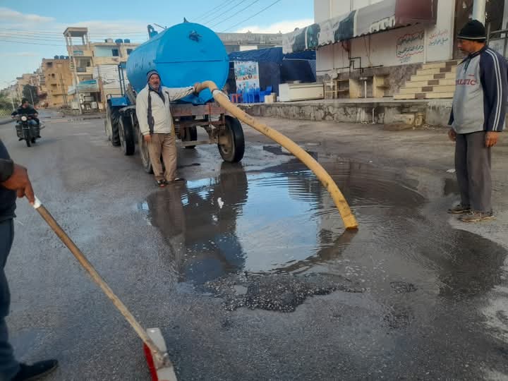 بعد ليلة ممطرة.. كسح المياه من شوارع مدينة بلطيم بكفر الشيخ