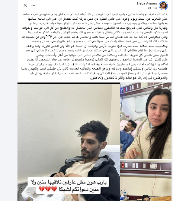 اختتمت: أتمنى ترحموا متعرفوش حاجة عن حياه الشخص أنا بطلع اتكلم واظهرلكم حاجات بس في مليون حاجة مستخبية فادعولنا نطلع من الفترة دي وبيتي يعيش حياة طبيعية زي الناس ويشفي إبراهيم ويعافيه ويرجع الصحة والعافية لجسمه تاني لأن حقيقي تعب واتبهدل بدنيا ونفسيا وبنعافر من القدر ومع المرض ومع الخذلان ومع الأذى النفسي، فاللي ميعرفش حاجة يبطل هبد والموضوع في إيد ربنا هو يعلم وأنتم لا تعلمون.