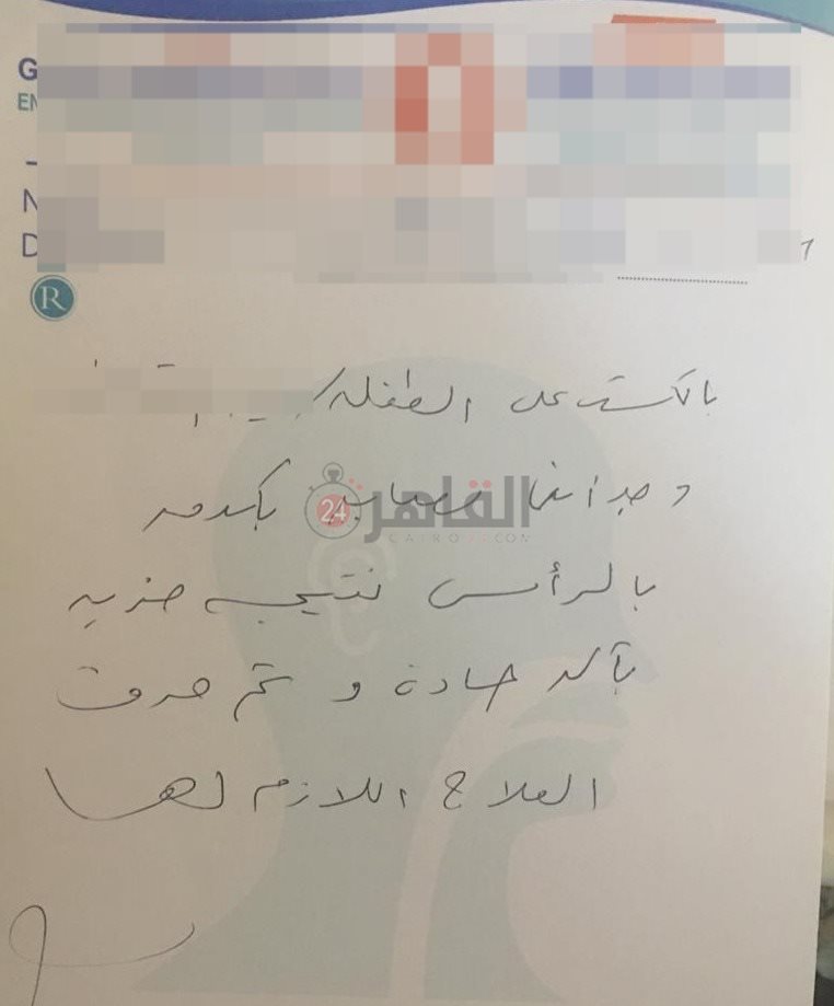 وأكدت أنه بعد عودة ابنتها من المدرسة شرحت ما حدث لها خاصة أن الصداع استمر، فأخذتها للطبيب لإجراء الفحوصات اللازمة وأشعة الرنين المغناطيسي، وأوضحت التقارير الطبية أنها تعرضت لحادث ضرب في مؤخرة الرأس بآلة حادة.
