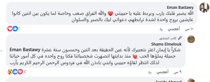 وأشارت الفنانة شمس البارودي، إلى أنها حاليًا تعيش على ذكرى الراحلين، شريك عمرها، الذي رافقها الرحلة منذ أكثر من 50 عامًا، وفلذة كبدها عبد الله، حيث كتبت الفنانة تعليق تعبر فيه عن انتظارها لقاء أحبابها، إذ قالت: بعد 52 سنة عِشرة جميلة يملؤها الحب، منذ بدايتها انصهرت شخصياتنا فكنا روح واحدة، في كل أمور حياتنا لذلك أنتظر لقاء حبيبي وابني بإذن الله في فردوس الرحمن الرحيم الكريم يا رب.
