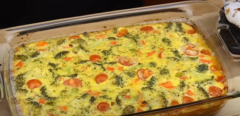 - اخبزي البروكلي بالبيض في الفرن على درجة حرارة 180 درجة لمدة 25 دقيقة ثم اخرجيه وقطعيه مثلثات وقدميه أومليت رائع.