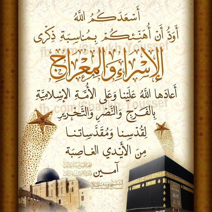 - بمناسبة ليلة الإسراء والمعراج، أسأل الله أن يملأ قلبك بالإيمان، وروحك بالطمأنينة، ويمنحك السعادة في الدنيا والآخرة.