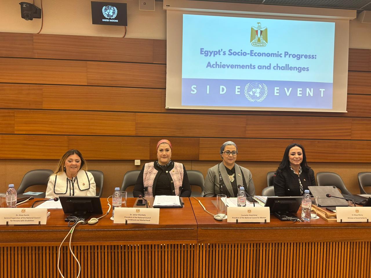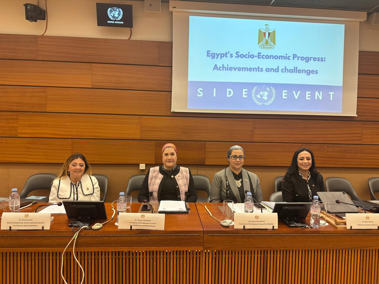 في حدث تاريخي يحدث للمرة الأولي، اجتمعت وزارة التضامن الاجتماعي، والمجالس الوطنية القومية، المتمثلة، في المجلس القومي للمرأة، والمجلس القومي للطفولة والأمومة، والمجلس القومي للأشخاص ذوي الإعاقة في الحدث الجانبي الذي أقيم تحت عنوان الحقوق الاجتماعية والاقتصادية في مصر، وذلك على هامش فعاليات الاستعراض الدوري الشامل UPR لملف حقوق الإنسان للدول الأعضاء في منظمة الأمم المتحدة، في جنيف بسويسرا، تحت مظلة مجلس حقوق الإنسان التابع للأمم المتحدة.