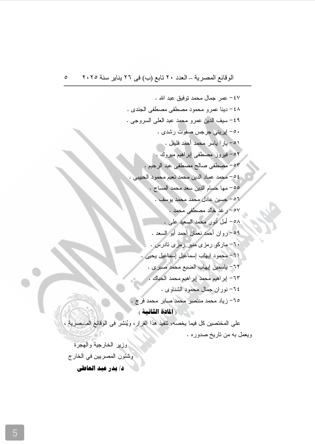 وحسب ما نشرته الجريدة الرسمية ننشر الأسماء كالآتي: