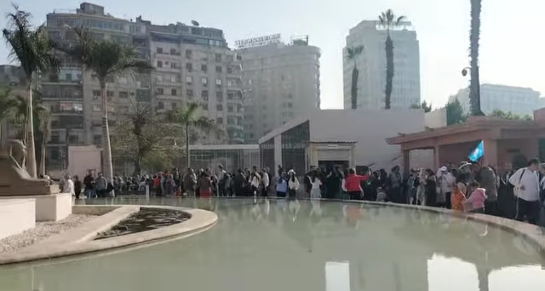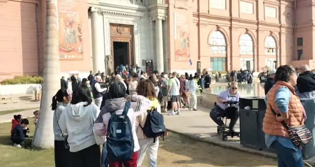 ونشرت إدارة المتحف المصري بالتحرير، عبر صفحتها الرسمية على فيسبوك صورا من ازدحام السائحين على بوابة الدخول الرئيسية للمتحف كالتالي: