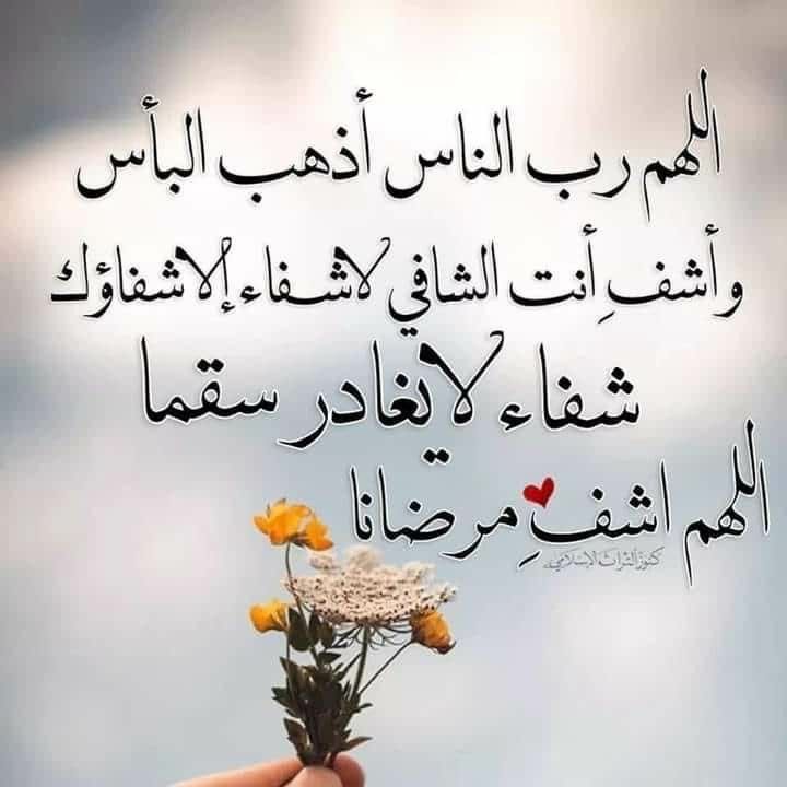 - اللهم إني أسألك بأسمائك الحسنى وبصفاتك العلا، وبرحمتك التي وسعت كلّ شيء، أن تمنّ عليه بالشفاء العاجل، وألّا تدع فيه جرحًا إلّا داويته، ولا ألمًا إلا سكنته، ولا مرضًا إلا شفيته، وألبسه ثوب الصحة والعافية عاجلًا غير آجلٍ، وشافِه وعافِه واعف عنه، واشمله بعطفك ومغفرتك، وتولّه برحمتك يا أرحم الراحمين.