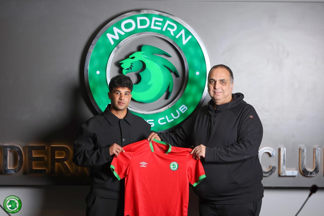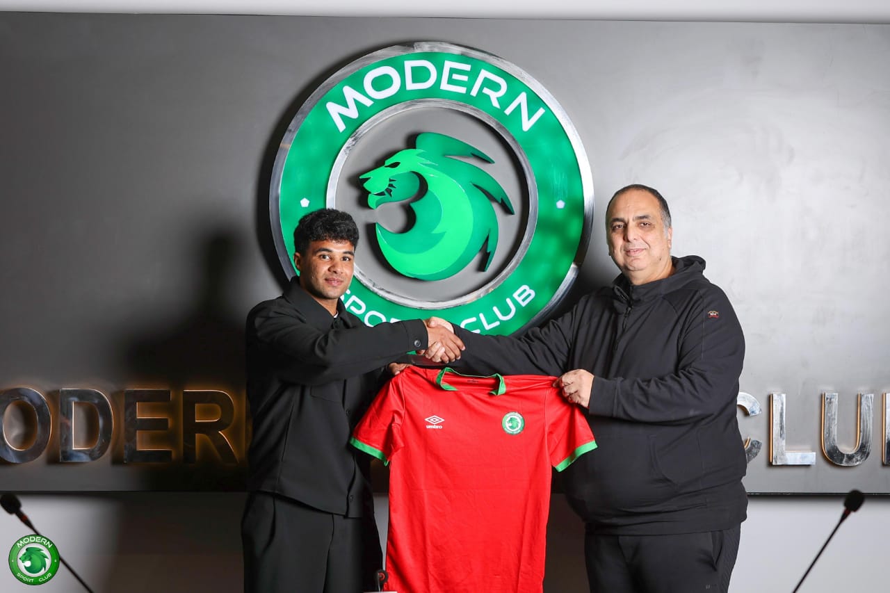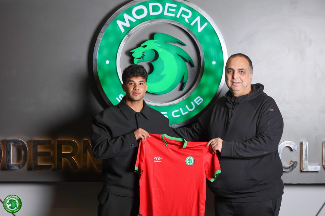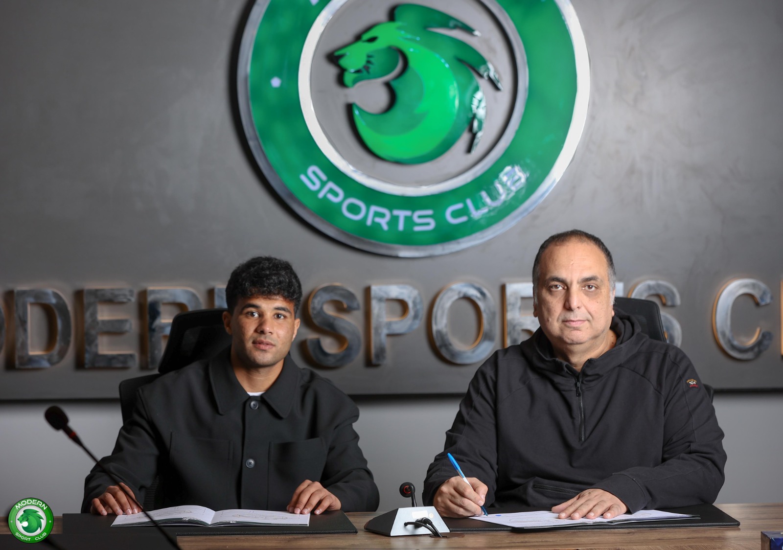 ووقع اللاعب على عقود انتقاله لفريق مودرن سبورت لمدة أربعة مواسم ونصف في حضور الدكتور وليد دعبس رئيس مجلس إدارة نادي مودرن سبورت والكابتن هيثم عرابي المدير التنفيذي للنادي.