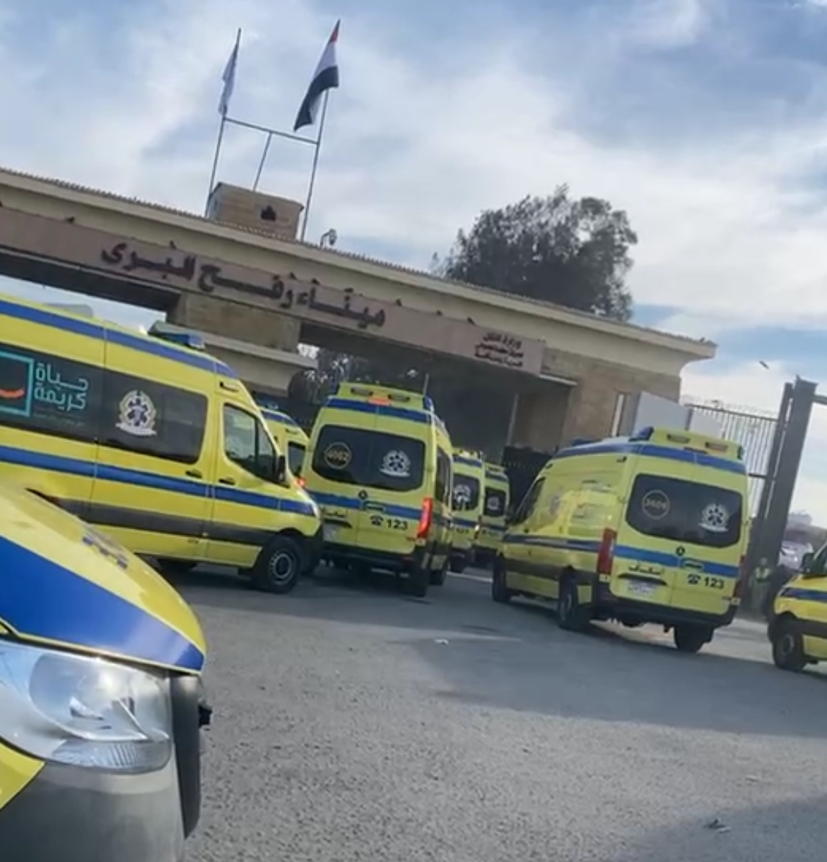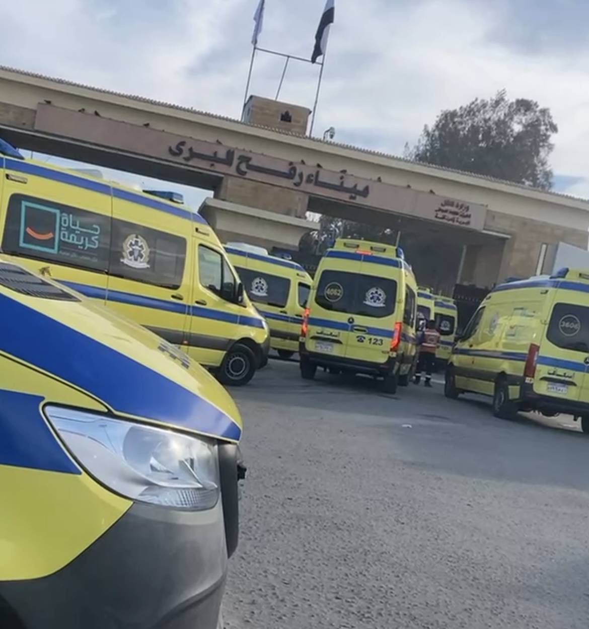 سيارات الإسعاف تستعد لدخول معبر رفح لنقل الدفعة الثانية من مصابي غزة