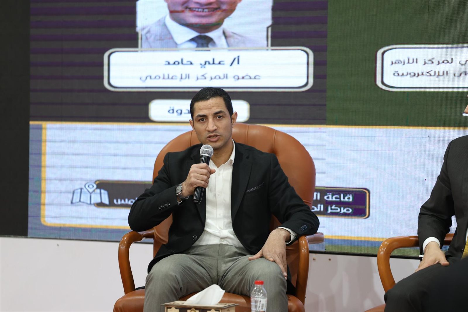 نظم جناح الأزهر الشريف بمعرض القاهرة الدولي للكتاب في دورته الـ 56، اليوم الأحد، ندوة بعنوان: توظيف تكنولوجيا الذكاءالاصطناعي في القضايا الدينية، شارك فيها الدكتور أسامة الحديدي، المدير التنفيذي لمركز الأزهر العالمي للفتوى الإلكترونية، وخالد البرماوي، الكاتب الصحفي المتخصص في الإعلام الرقمي، وأدار الندوة علي حامد عضو المركز الإعلامي بالأزهر.
