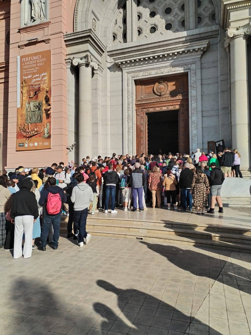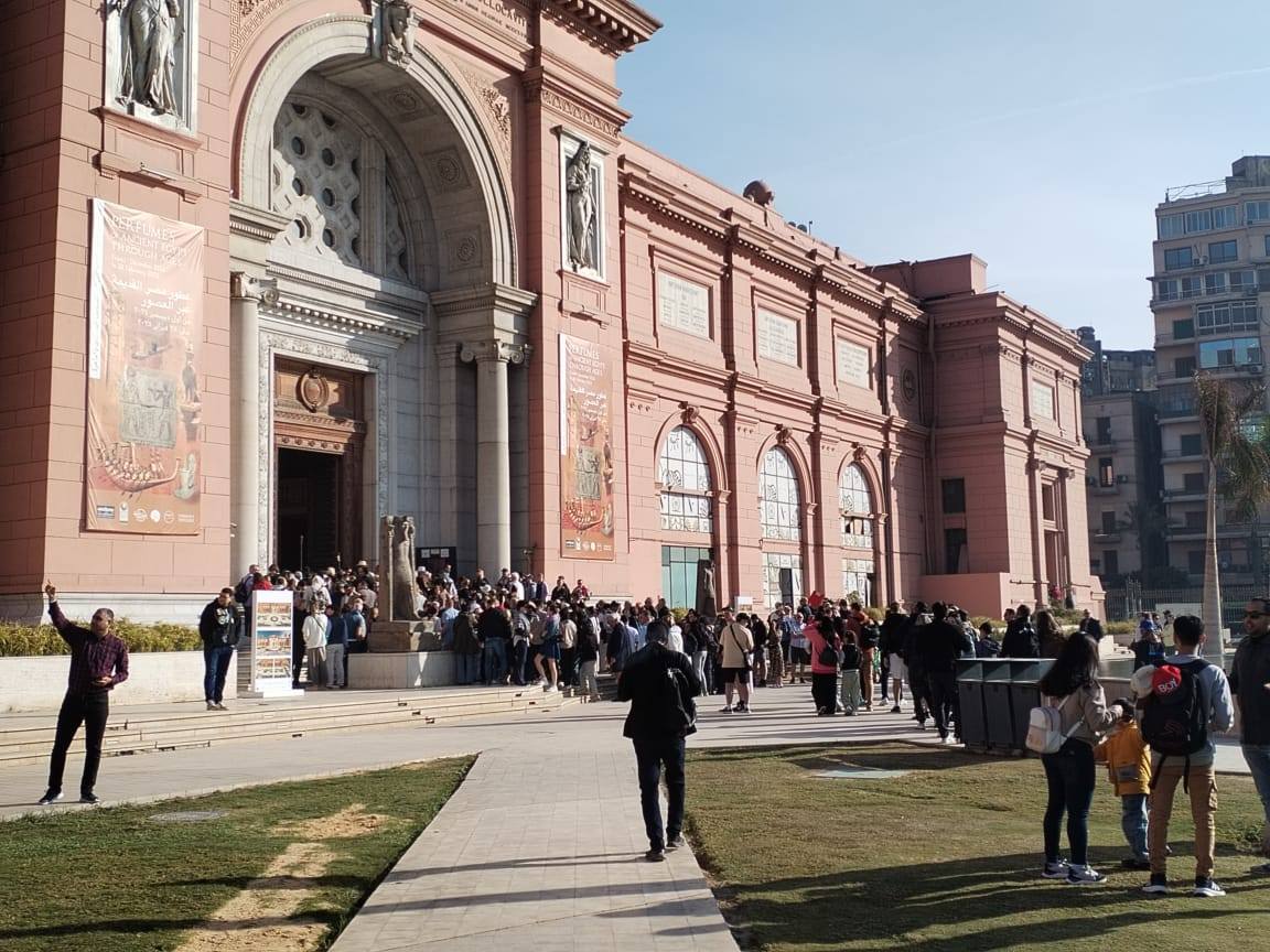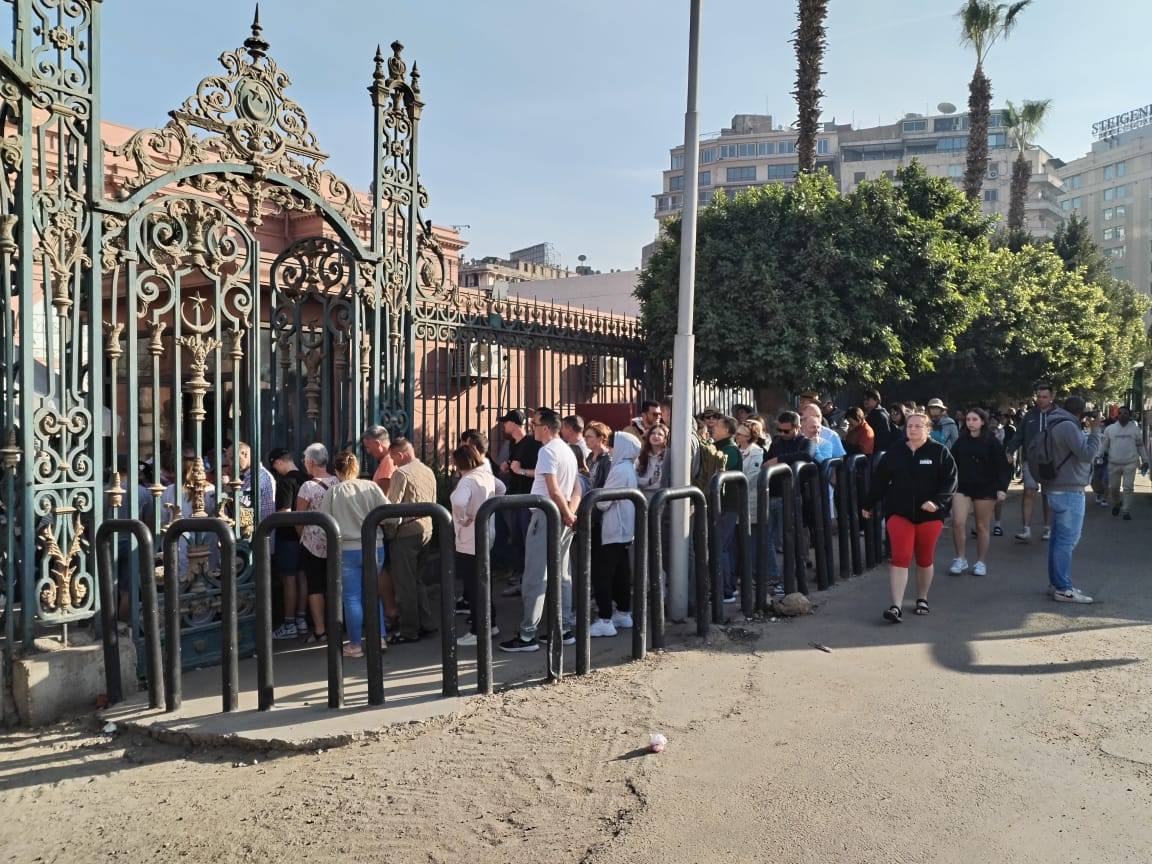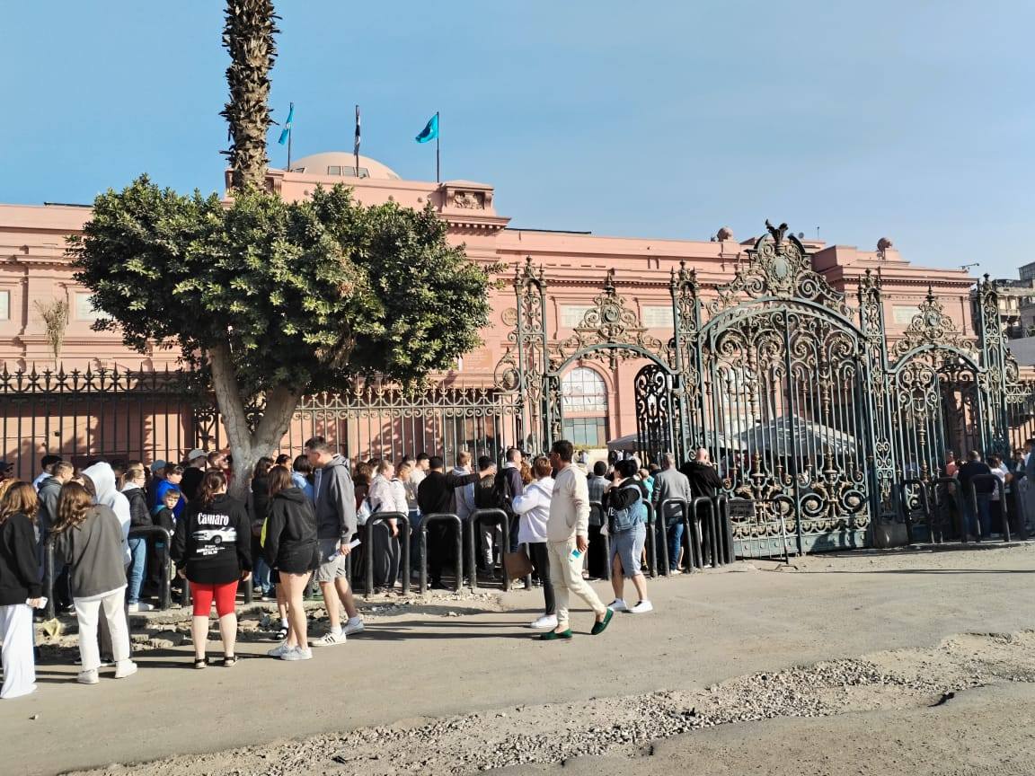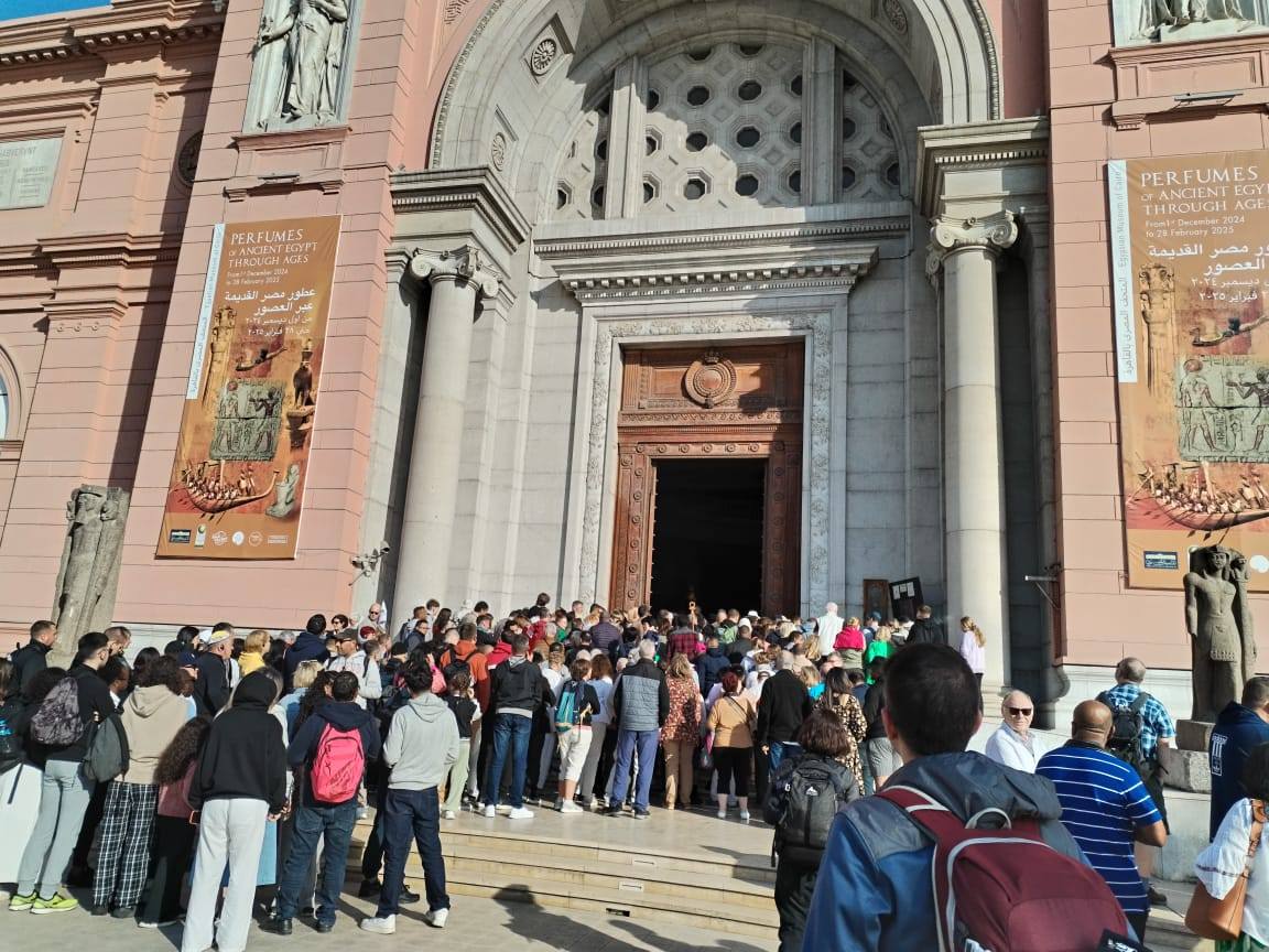 ونشرت إدارة المتحف المصري بالتحرير، عبر صفحتها الرسمية على فيسبوك صورا من ازدحام السائحين على بوابة الدخول الرئيسية للمتحف كالتالي: