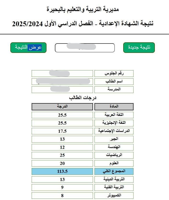 نتيجة الصف الثالث الإعدادي محافظة البحيرة 2025