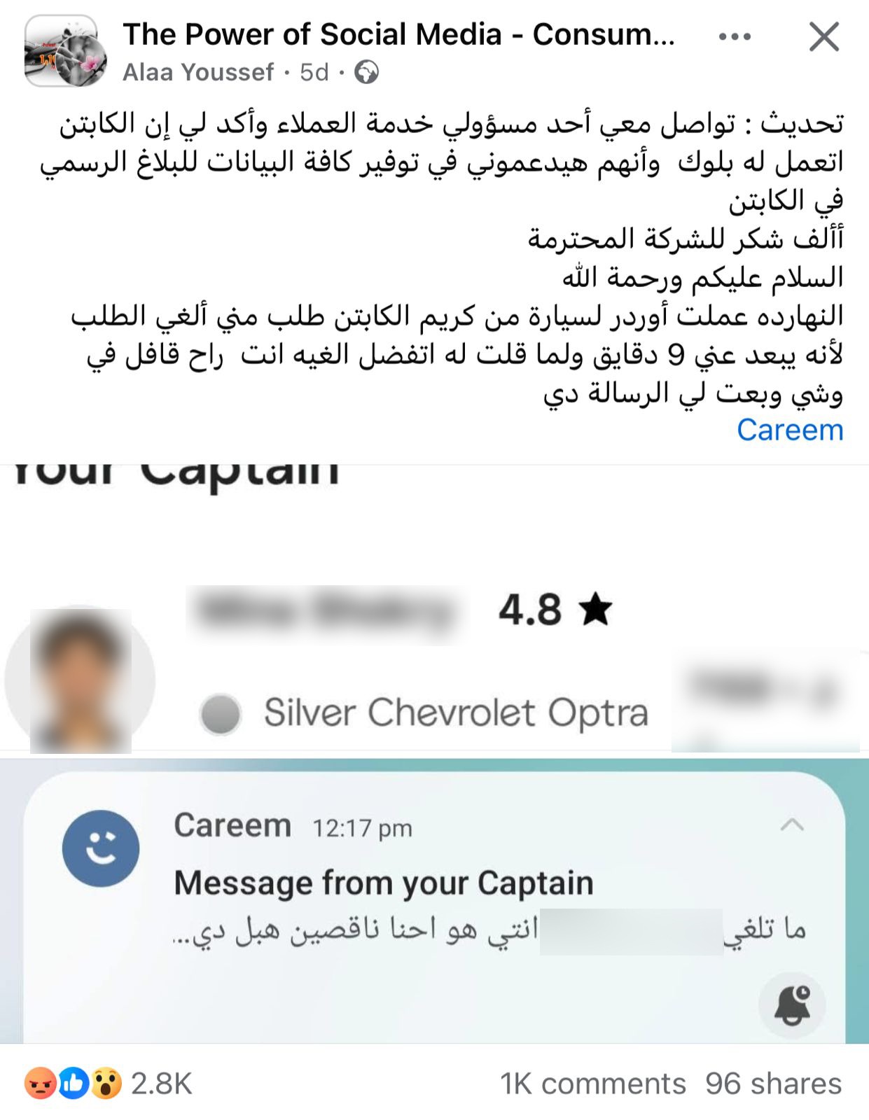اشتكت عملية تدعى آية يوسف، شركة كريم Careem للنقل الذكي، واتهمتهم بسوء معاملة أحد الكباتن لها، وذلك عقب طلب توصيلها في إحدى الرحلات.