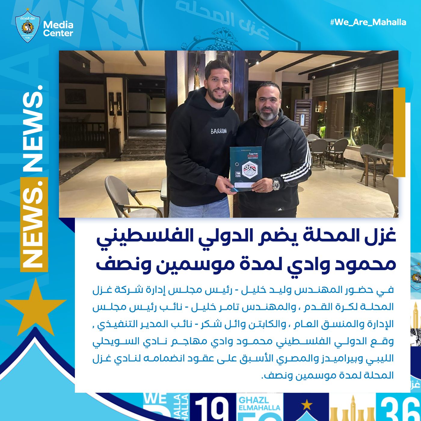 وقع الدولي الفلسطيني محمود وادي مهاجم نادي السويحلي الليبي وبيراميدز والمصري الأسبق على عقود انضمامه لنادي غزل المحلة، لمدة موسمين ونصف.