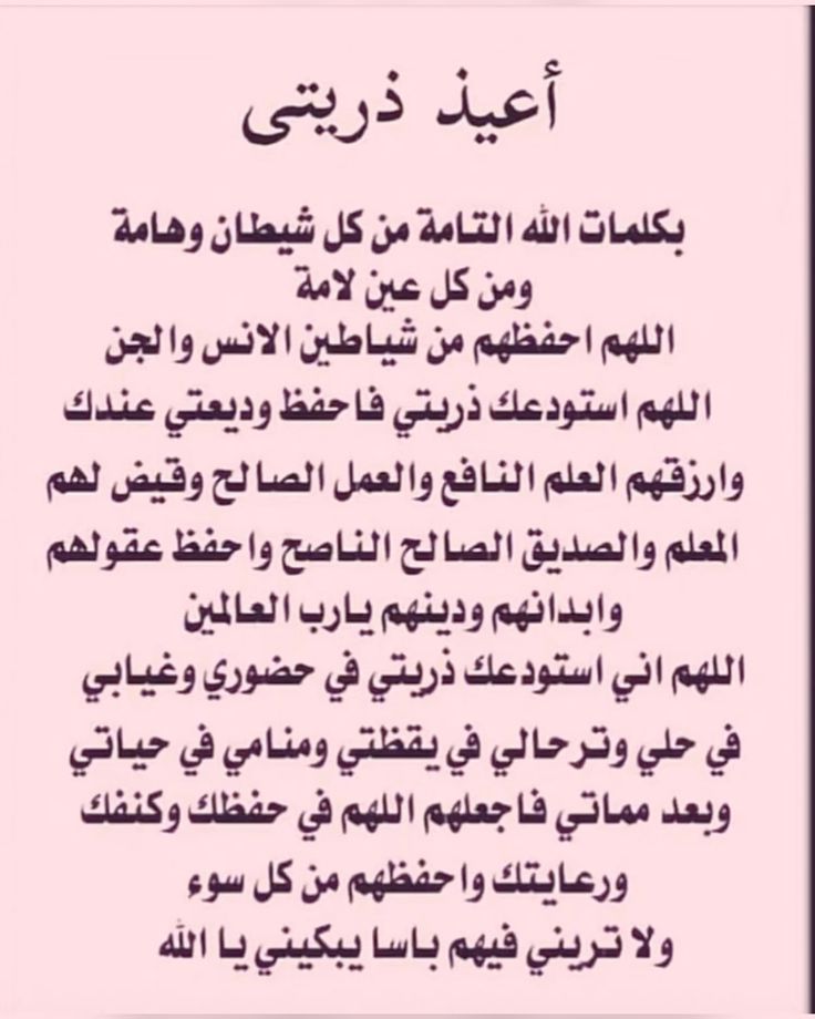 - اللهم اجعلهم قرة أعين لنا في الدنيا والآخرة، واجعلهم من الذرية الصالحة التي تنفع الإسلام والمسلمين.آمين يا رب العالمين.