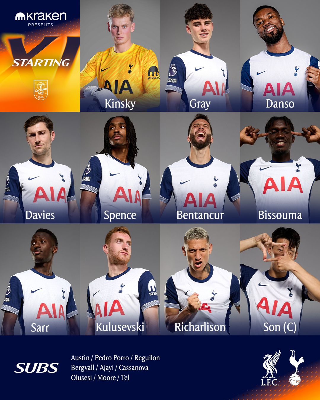ويأتي على مقاعد بدلاء الفريق: جاروس - إندو - دياز - أليستر - كييزا - إليوت - جوتا - تسيميكاس - كوانساه.