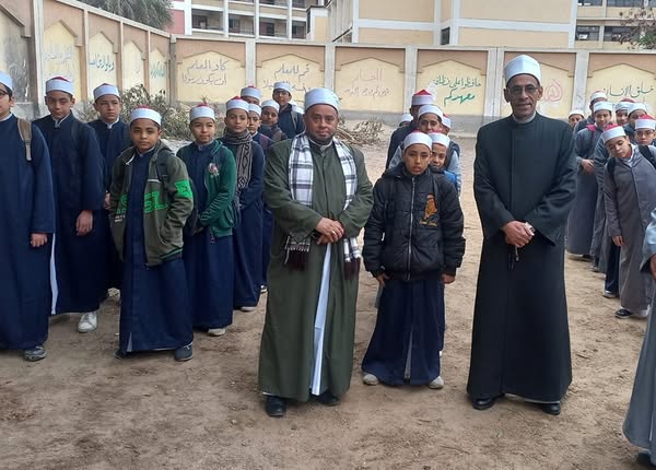 العمة الحمراء والقفطان يزينان طوابير الصباح بالمعاهد الأزهرية