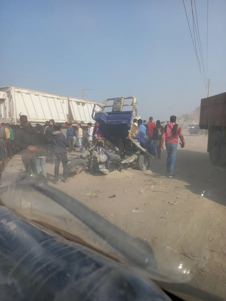 جرار يصدم ميكروباص وتروسيكل بالصف