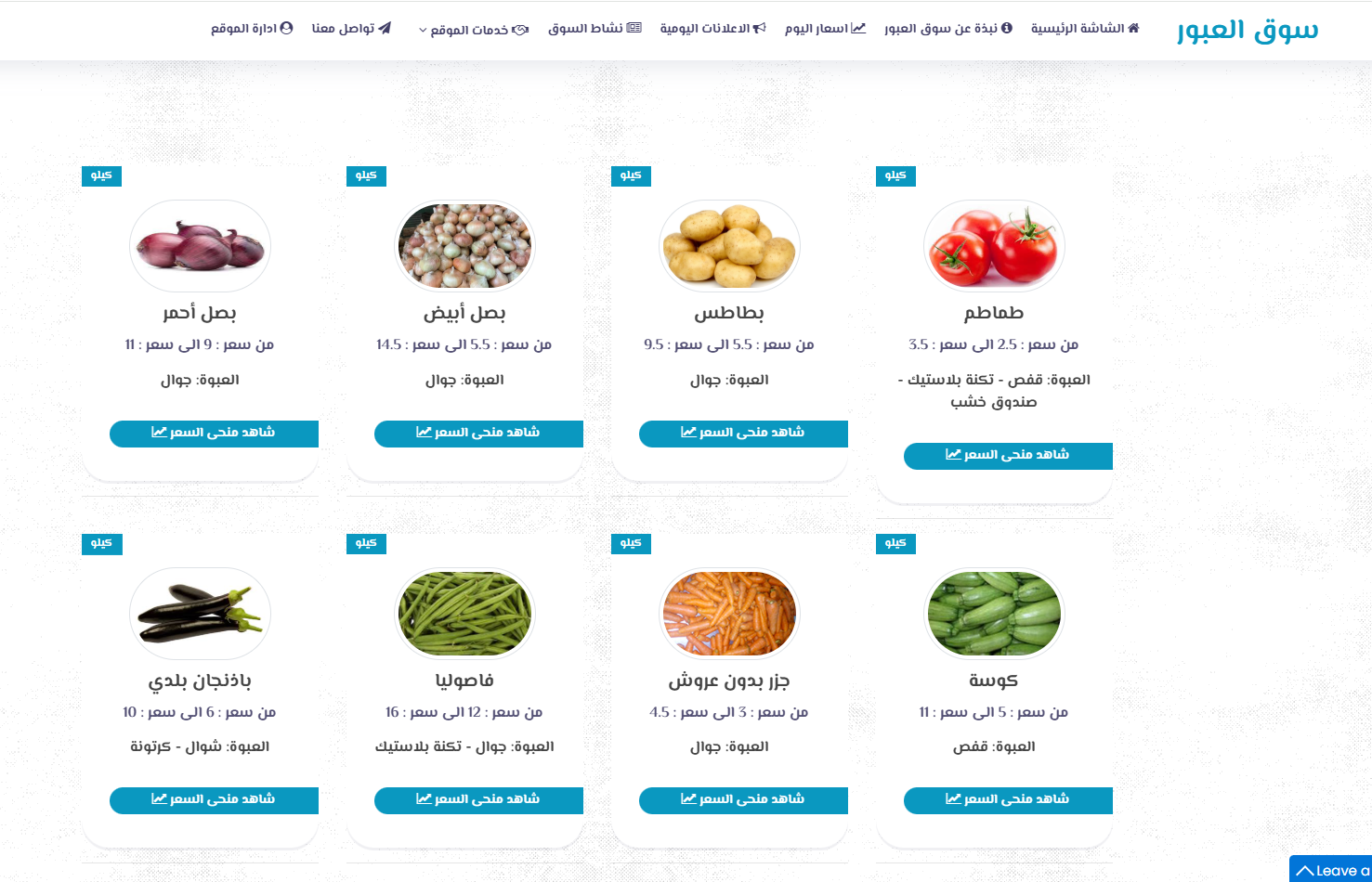 وجاء سعر كيلو القلقاس بسوق العبور بين 15 و19 جنيها، وسعر كيلو البطاطا بين 4 و12 جنيها، وسعر ورق العنب البلدي بين 80 و100 جنيه.