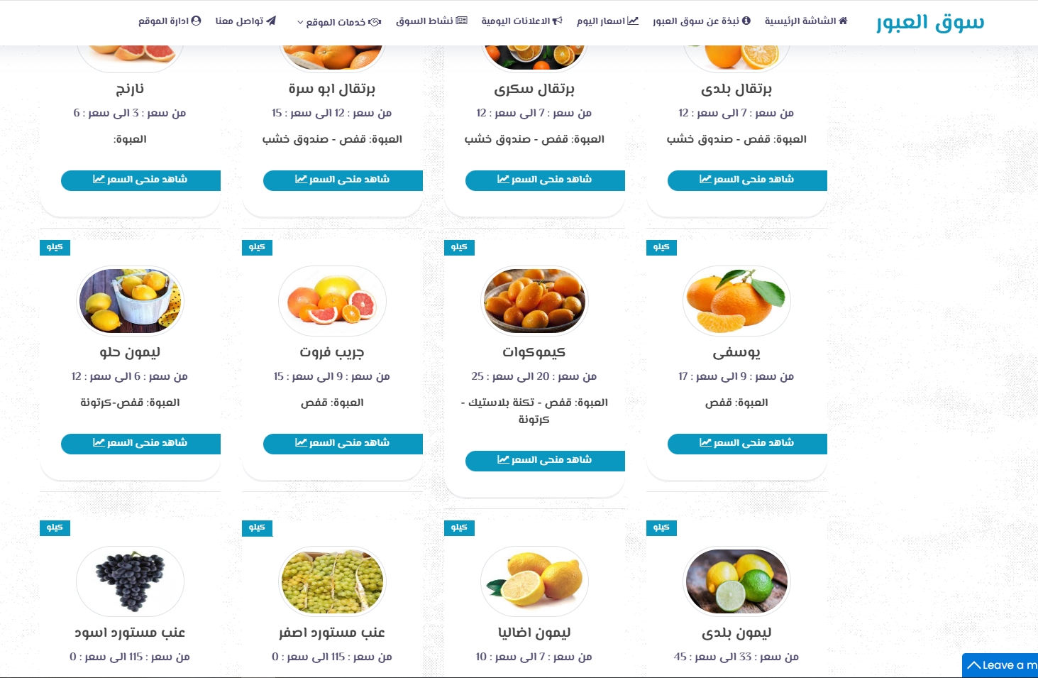 وبلغ سعر اليوسفي بين 9 و17 جنيها للكيلو الواحد، وسعر الجريب فروت بين 9 و15 جنيها، وسعر كيموكوات بين 20 و25 جنيها.