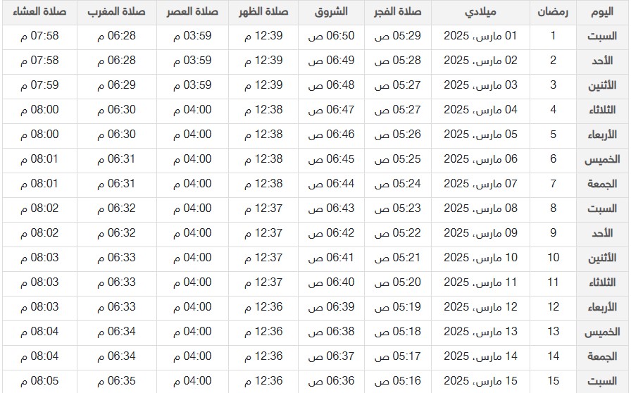 مواقيت الصلاة في رمضان 2025 دبي