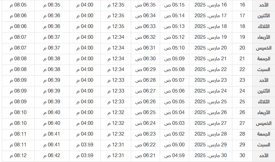 - أذان الفجر الإمساك: 4:48 صباحًا