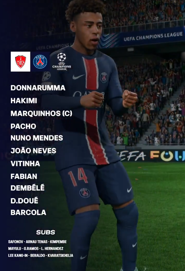 التشكيل الرسمي لمباراة بريست وباريس سان جيرمان في ذهاب الملحق المؤهل لدور الـ 16 بدوري أبطال أوروبا